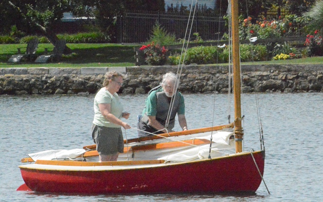 While it looked simple enough, the single lap windward-leeward race was deceptively complicated. Catboats are wide with a relatively shallow draft and a single gaff-rig sail, ideal for fishing coastal waters, which was their original purpose. It also means they’re relatively easy to sail and very difficult to tip over, ideal (again) for sailors of varying skill levels in unfamiliar boats. |